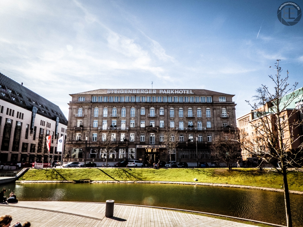 Für das Wochenende war sommerliches Wetter vorhergesagt und ich hatte in der nordrhein-westfälischen Hauptstadt u. a. noch drei RAF-Spots, die ich für meine Homepage http://www.wo-war-das.de fotografieren wollte. Also nutzte ich die Gunst der Stunde und fuhr mit dem IC für 13 Euro nach Düsseldorf. Nachdem ich am Hauptbahnhof angekommen war, ging ich zunächst zum “Hotel Nikko”, wo 1987 der Film “Die Katze” mit Götz George, Heinz Hoenig und Gudrun Landgrebe gedreht wurde.
