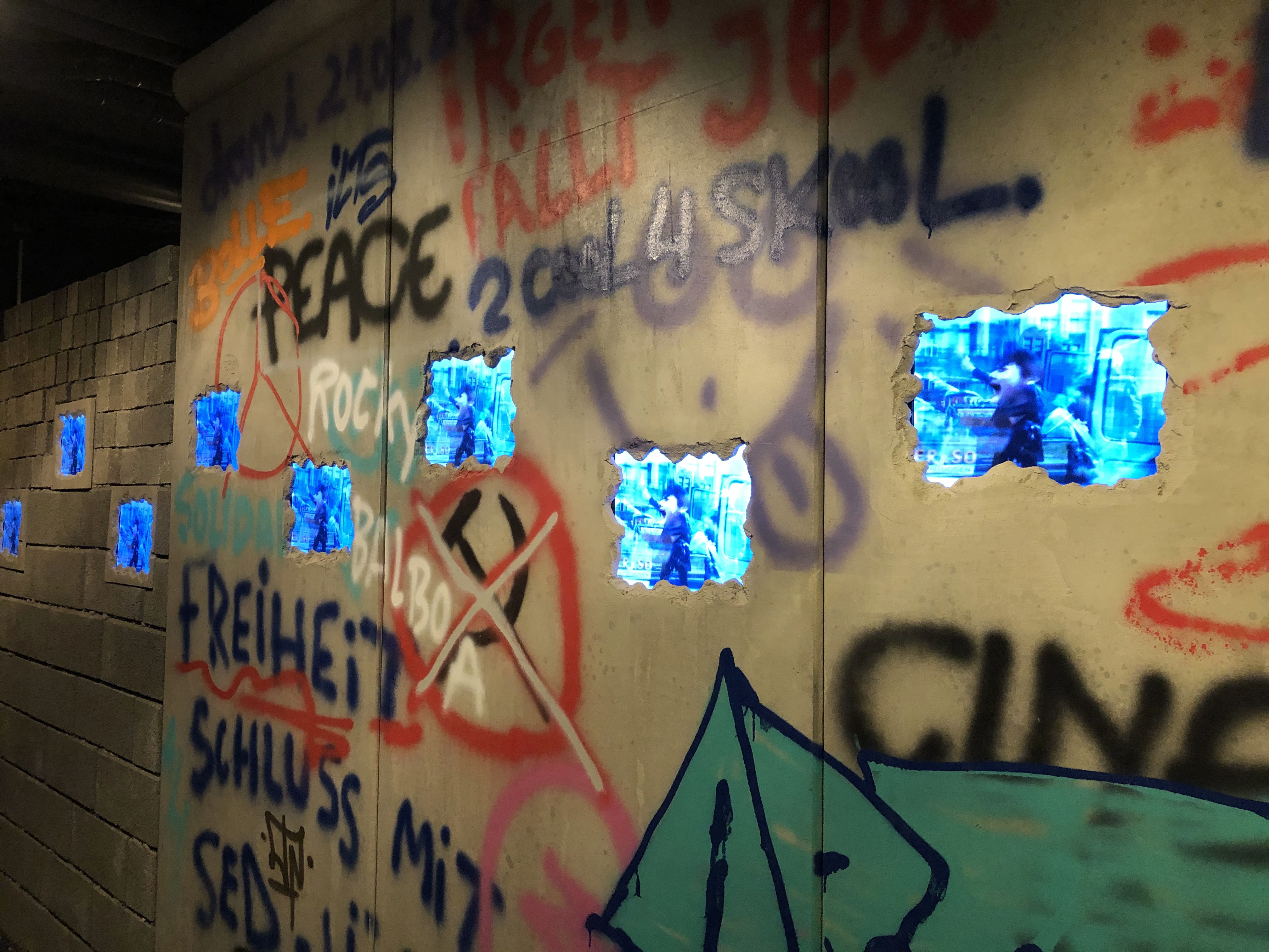Anschließend kommt man in den zweiten Raum (ähnlich wie in Köln) und sieht dort drei Videos, in der drei Berliner ihr Leben zum Zeitpunkt des Kalten Krieges schildern. Dabei handelt es sich zwar um Schauspieler, deren Erzählungen und Lebensgeschichten jedoch auf Recherchen beruhen. Am Ende des Films wird auch hier die Handhabung der VR-Brille erläutert.