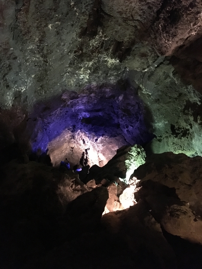 Die “Cueva de los Verdes” liegt im Nordosten der Kanareninsel Lanzarote und ist eine ca. acht Kilometer lange Lavahöhle (die größte der Welt), von der ein Kilometer begehbar ist. Die Tour wird von einem Guide geführt und ist nicht barrierefrei, denn es geht teilweise durch Öffnungen hindurch, die ca. 1,40 m hoch sind und stellenweise sind die Wege sehr eng. Festes Schuhwerk muß man nicht unbedingt tragen (Ich habe die Tour mit Flip-Flops gemacht.), aber wenn man nicht aufpaßt, kann man sich an den Steinen eventuell verletzen.