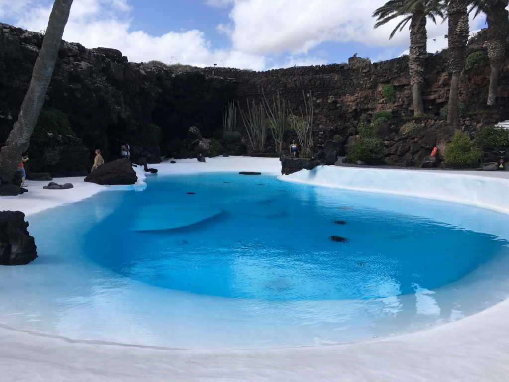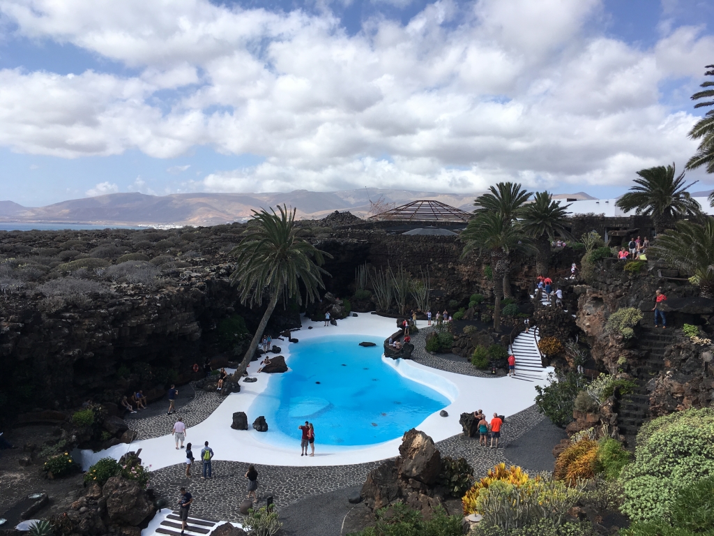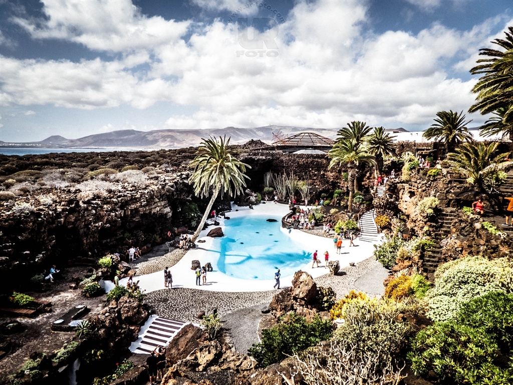 Ich persönlich halte den Eintritt für ein wenig zu hoch angesetzt. Es mag zwar durchaus interessant sein, Albinokrebse und den See in der nach beiden Seiten offenen Lavahöhle zu sehen, aber mich persönlich hat es nicht unbedingt umgehauen. Für Fußkranke ist “Jameos del Agua” nicht empfehlenswert, da man sehr viele Stufen bewältigen muß. Und der fotografische Wert ist auch eher gering, weil es aufgrund der Lichtverhältnisse schwierig ist, Fotos zu machen. Man hat in der Lavahöhle im Hintergrund stets Tageslicht und in der Höhle ist es entsprechend dunkler. Den Pool hingegen kann man sehr gut in Szene setzen, wenn nicht die versammelten Touristen immer durch’s Bild laufen oder im Bild stehen würden. 😉